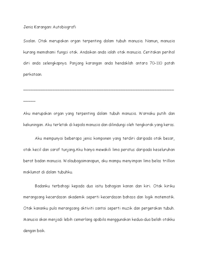 Contoh Karangan Aku Otak Manusia